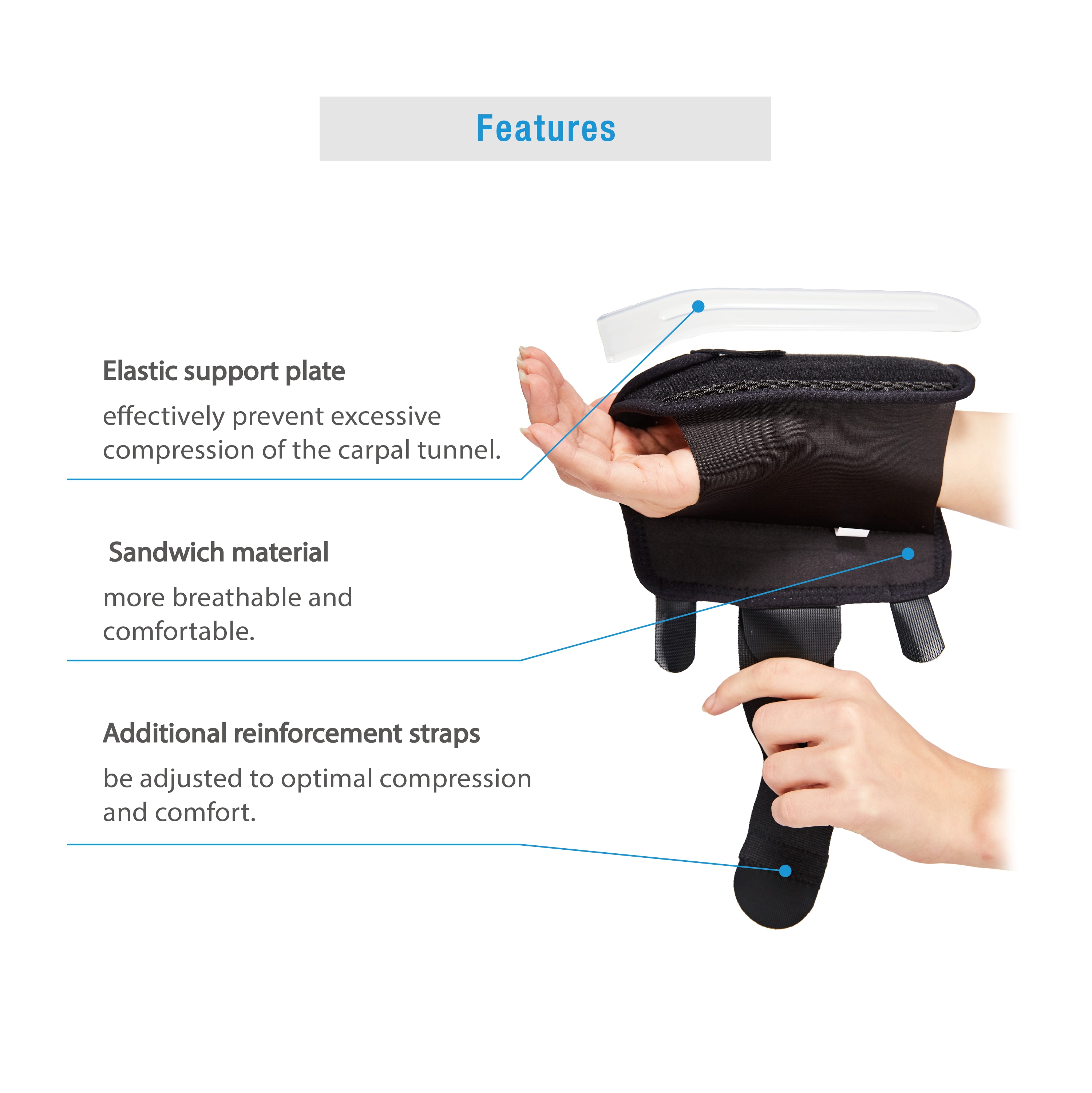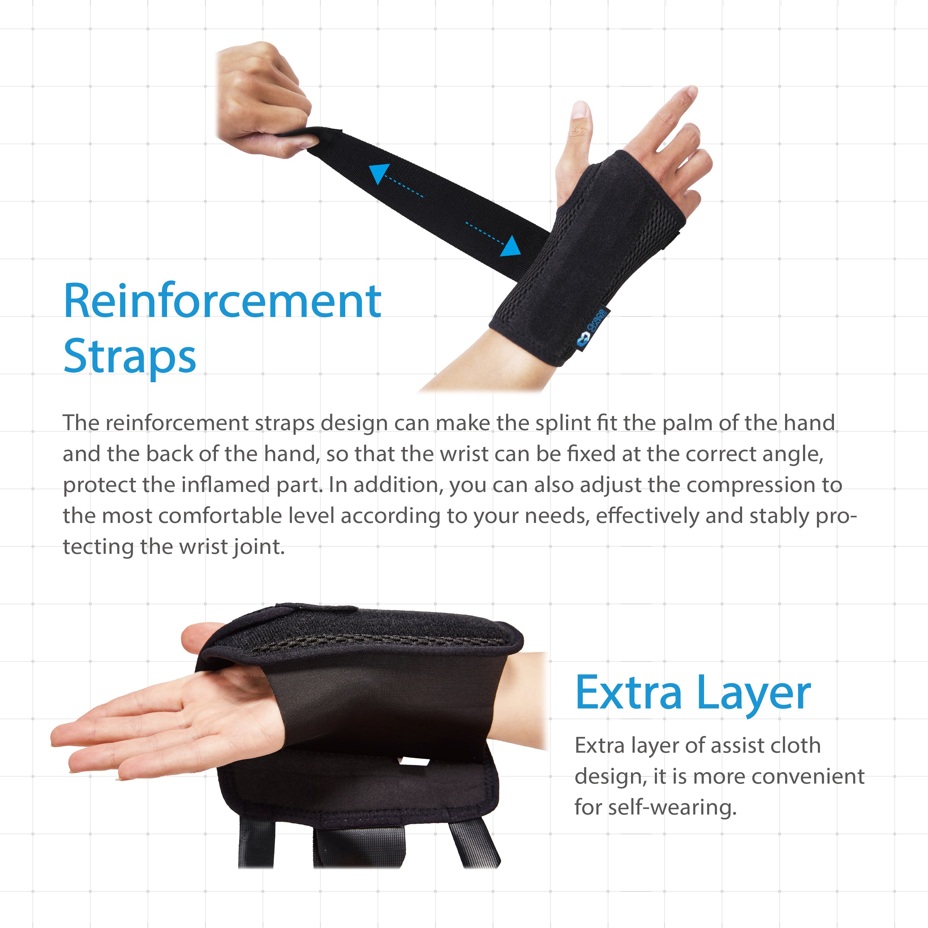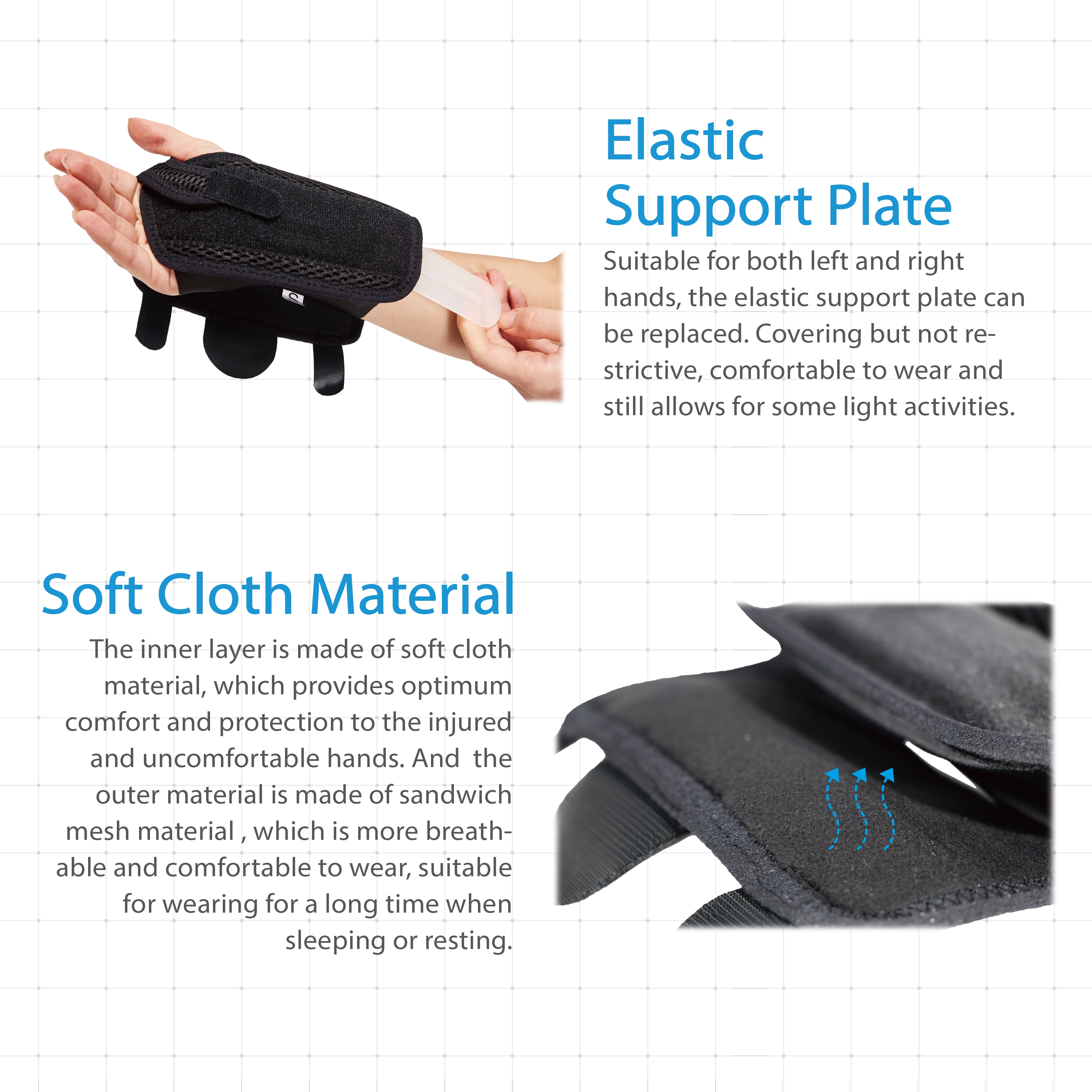 ● Protection – Palmar splint and dorsal splint limit the motion of the wrist and hand. Prevent wrist sprain, strengthen the stability and provides appropriate support.